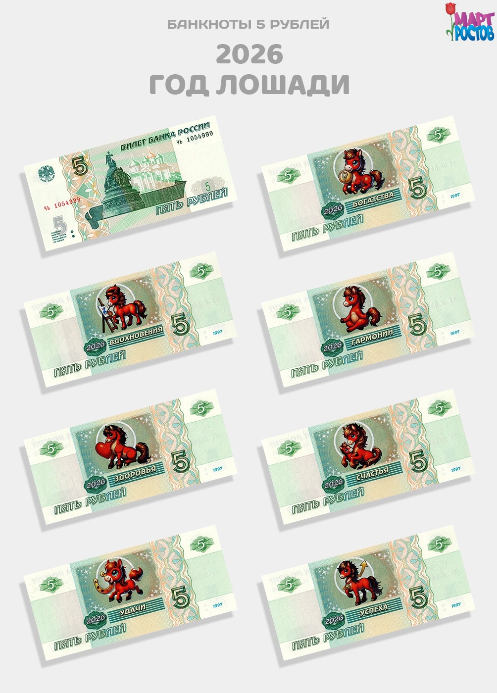 Купюра 5 рублей Огненная Лошадь.
